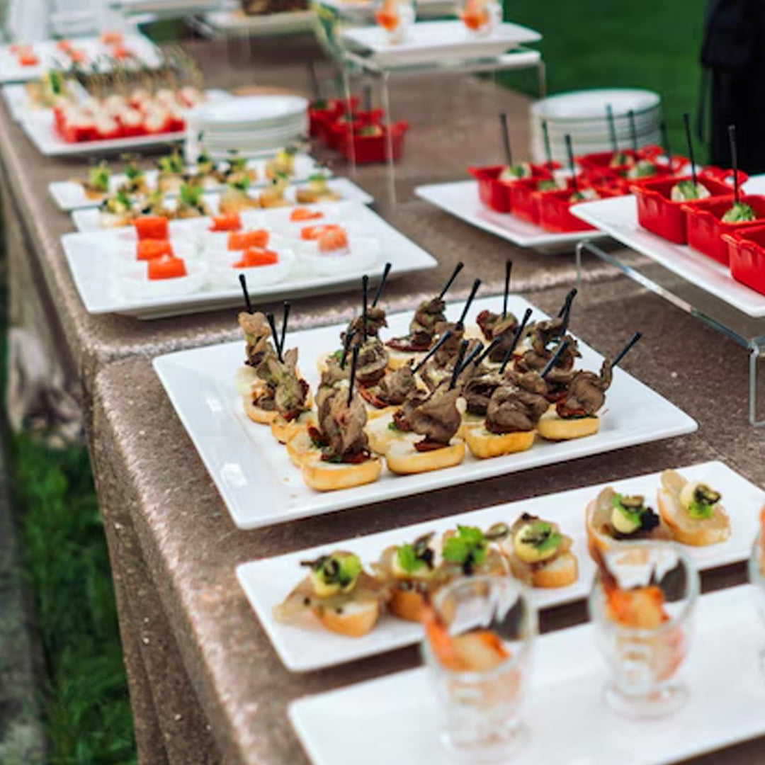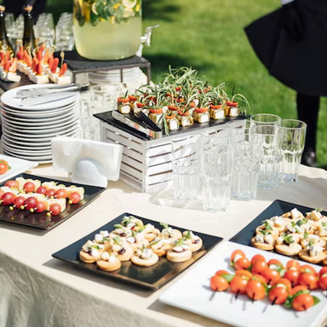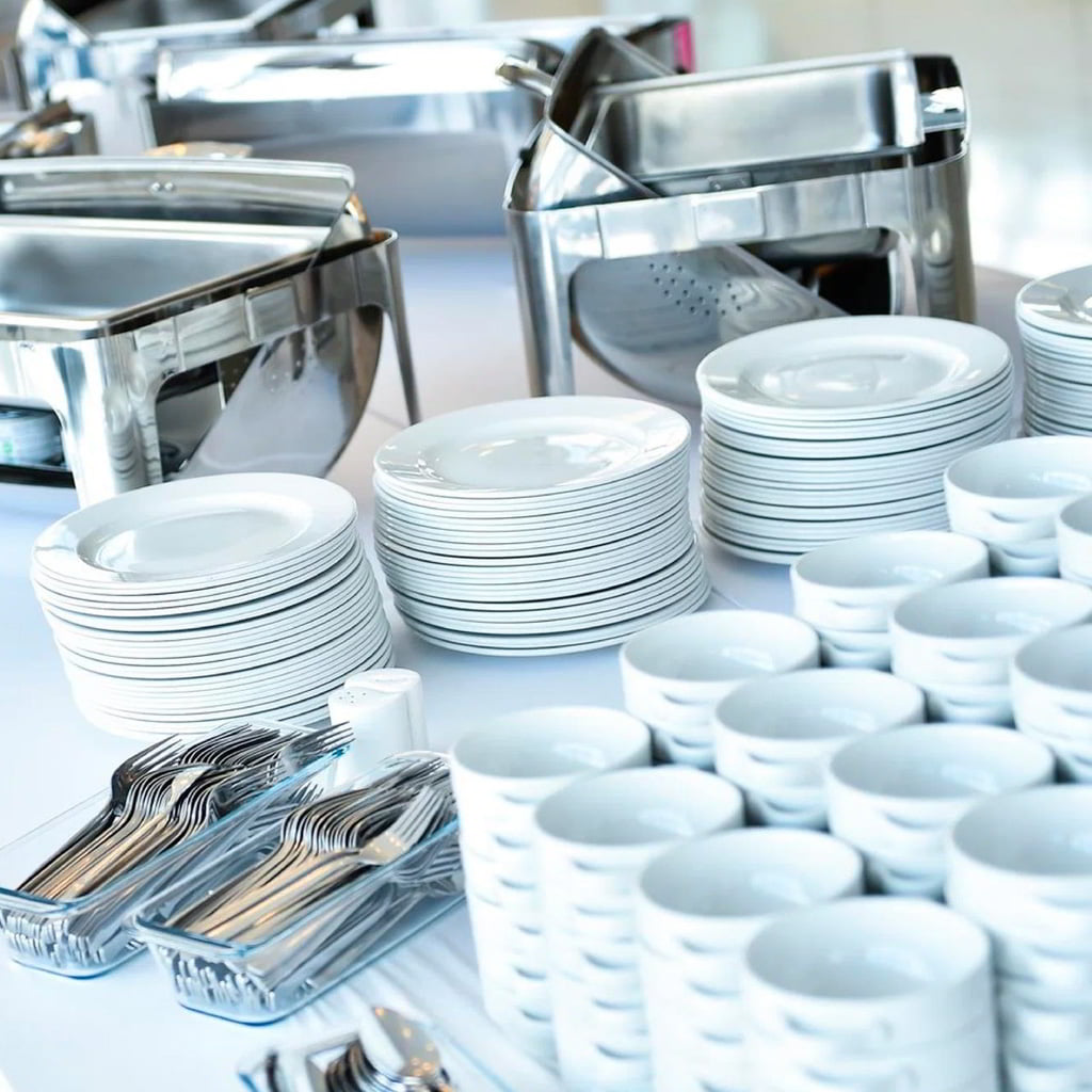К кейтерингу можно добавить аренду всего необходимого для события: банкетные и фуршетные столы, стулья, посуду и мармиты для поддержания температуры блюд.